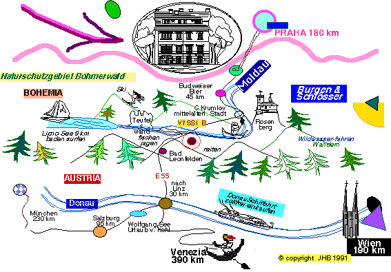 besuchen: Wien, Linz/Donau, Budweis, Krumlov (mittelalterl.